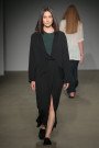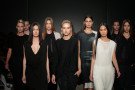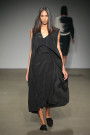 In a world of fast fashion, designer Annemarie Westen wants to go back to craftsmanship, the point where the fashion process starts from scratch. “My work is never really based on a solid concept, it’s more about the feeling. It surpasses time or age and particular fashion seasons. I aim to give women a certain feeling, I want my clothes to strengthen who they are. Be equal to yourself. Sexyness and confidence is not depending on boobs or butts, but knowing yourself.” Something Annemarie herself has no trouble with, as this collection was full of her familiar signatures. Her designs are simplistic, sophisticated and wearable without losing elegance. She plays with subtle changes in the usual, using sharp graphic layers as a sign of strength, while the soft springy materials such as silk and wool emphasise a woman’s grace. But this time around she added more draping details in maxi-dresses and trousers. For a summer collection though, the colour palette was quite gloomy with only black, white and green. “Black is usually the basic pallet I’m working on, because it’s my favourite colour. And use of colour can cause distraction.” It perfectly fitted the dark, heavy music of Marilyn Manson and Pantera that reached our ears, and gave the show an even stronger heartbeat and a don’t-mess-with-me feeling. Exactly as she had hoped for.