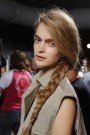Judging from what we saw on the runway braids are still hot, like long loose and untidy braids at D Squared, Alexander Wang, Margaret Howell and Giambattista Valli. The models at Oscar de la Renta worked the braided headband. For those braids a piece of fabric was braided together with the model’s hair.