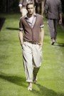 It was simply a very commercial collection, but there is nothing wrong with the way Giannini does it. As long as is has that luxury, playboy feeling. The suits in midnight blue were chic and fresh, for those lazy summerdays there are shorts, silk shirts with a classic scarf-print, cotton knit cardigans and sweaters and a laid back tuxedo in chocolate-brown, dark-blue or green.