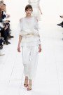 For spring Raf Simons said he “didn’t want to do a heavy concept, hence the idea of the garden, flowers, spring and the evolution of that.” So he presented us with a tent full of green hedges and the freshest looking models. Sporting chic red lips and slightly wet locks the Dior ladies appeared in a series of designs in the most unexpected shades. Burgundy, deep green, yellow and back were mixed with shades of neon, nude and soft pink. Strapless dresses were fairytale like, cigarette pants refreshingly chic and a floor sweeping skirt and top were both modern and timeless. We still have to get used to the bright colored tights, but as we saw during last night’s ELLE STYLE AWARDS this trend is picked up pret-ty quickly.