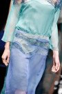 This season it’s all about material mixing. Of course we were already wearing shear tops with heavy skirts. Yet this time around single fashion pieces exist of a mix of fabrics. After seeing leather accents such as collars, cuffs and pockets for a few seasons it’s all about transparency this summer. Think cotton tops with sheer silky parts, satin skirts with transparent hemlines or dresses with see through mid riffs. Not cut-outs but body parts just subtly covered by a fine layer, adding some seductiveness to the look. While Viktor & Rolf created a clash with their metallic fabric, Paul Smith showed some contrast by using lace, Jason Wu opted for leather and Dolce & Gabbana blew everyone away with their use of cork. Other labels such as Blumarine, Céline, Gucci, Stella McCartney, Chloé and Chanel showed multiple variations of sheerness, sexy, tough and sportive. Looking seductive was never this chic.