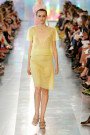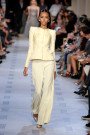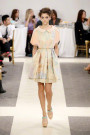 For spring Raf Simons said he “didn’t want to do a heavy concept, hence the idea of the garden, flowers, spring and the evolution of that.” So he presented us with a tent full of green hedges and the freshest looking models. Sporting chic red lips and slightly wet locks the Dior ladies appeared in a series of designs in the most unexpected shades. Burgundy, deep green, yellow and back were mixed with shades of neon, nude and soft pink. Strapless dresses were fairytale like, cigarette pants refreshingly chic and a floor sweeping skirt and top were both modern and timeless. We still have to get used to the bright colored tights, but as we saw during last night’s ELLE STYLE AWARDS this trend is picked up pret-ty quickly.