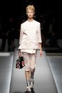 On a barely lit runway Miuccia Prada sent out her fifties style ladies. Ladies that appeared elegant, but there was something off. Their clothes were tailored, but ill-fitting. The designs had a feeling of couture, yet were definitely ready to wear.