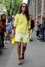 They´re feminine, flattering and look so sweet you almost want to take a bite out of them. For this year too the international runways were filled with pastel shades. From vanilla and lemon, to blueberry and pistache; sorbet chic is the color way to go. Always part of the sweet tooth team Blugirl and Blumarine, but also Valentino and Chloé went for sheer, ruffled pastel looks. As Fendi (shades of salmon and mustard work so well together), Chalayan and Mulberry opted for a cleaner kind of look. And that´s exactly how we saw these pastel hues back on the streets; less feminine (away with the ruffles and the lace) and more structured (thick fabrics, masculine shapes). Surprising in a way, yet still very natural. Which flavours are you combining this season?