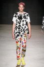 Marije Hellwich only presented eight different looks tonight, but still managed to show a mix of mens and womenswear. She opened her show with a sheer floral printed dress, followed by a satin-like menswear look. Later the transparent items (like a very cool menswear rugsack) were mixed with ultra thick neopreen pieces, like an enormous off white coat mixed with a pair of printed pants and a sand colored top combined with a sheer fringed skirt.
