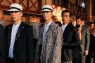 The Beatles were the soundtrack for a sweet, urban/preppy collection from Junya Watanabe. He said he moved away from structure although his men looked rather sharp-dressed. There was a easy feel to the collection with the fresh-faced models in suits and separates in cornflower blue, khaki and pale gray. Pants were cropped above the ankle or cut into trim Bermudas. Individual touches included elbow patches and pocket trims in shirt fabrics.