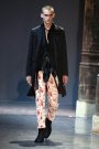 She may have changed her color palette, but her man stays the same: romantic and a loner. Some oriental elements resonated in this collection, like the side-tied silk kimono tops bubbling out from beneath jackets, trailing sashes behind. Demeulemeester made it her own by undercutting preciousness with ease. She loosened her stricter silhouette with wide, soft pants, some printed with casual stripes or graphic roses.