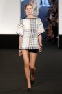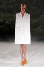 We got quite a feeling of optimism through Chalayan’s spring/summer show. He presented a very light collection of clean, boxy designs. Models sported boxy blouses, dresses and jackets worn with small pants or bare legs to keep them slightly feminine. If Chalayan accentuated the waist, some other part of his creation had to be structured, so playful skirts were mixed with puffy tops. Combined with bright green, yellow, orange and blue all the white felt even more fresh. Used on mesh fabrics and jersey inspired materials looks got a sportive touch as well.