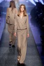 The accessories got everybody’s attention: the silly flat slippers lined in vibrant fur were a runway-only joke. Simply beautiful was her new handbag, a soft pastel clutch rolled over on top like a paper bag.