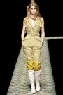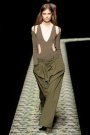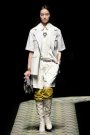 We got quite a feeling of optimism through Chalayan’s spring/summer show. He presented a very light collection of clean, boxy designs. Models sported boxy blouses, dresses and jackets worn with small pants or bare legs to keep them slightly feminine. If Chalayan accentuated the waist, some other part of his creation had to be structured, so playful skirts were mixed with puffy tops. Combined with bright green, yellow, orange and blue all the white felt even more fresh. Used on mesh fabrics and jersey inspired materials looks got a sportive touch as well.