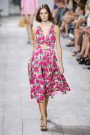 Creative Director Josep Font of the Spanish house Delpozo played with volume, proportion and illusion. He began with exaggerated sportswear silhouettes: the widest of red culottes paired with a white wrapped bandeau, and the fullest of skirts, beautifully done in a white, navy and green midi strapless dress with a white shirt underneath. He then shifted gears into more sculptural pieces inspired by the land art of Nils-Udo, including a yellow top with an exaggerated peplum and a sculpted flower on the bodice, and a miniskirt with origamilike panels.