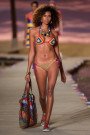 At Tommy Hilfiger we sat back and relaxed while the designer took us on a trip to the Carribean. He recreated the turquoise waters of Jamaica and the sand beaches of Mustique as the backdrop of his catwalk. So his tropically, hippy-ish dressed models walked along the beach. Hilfiger’s signature American sportswear perfectly worked together with the island life dress code. Billowing dresses sport lush flora and fauna patterns, while tropical hued patchwork and vibrant stripes energize sundresses and separates. Denim jackets and chinos are faded for a loved effect and accented with beaded tapes and whip stitched borders. The traditional cricket sweater reinvented in homespun crochet, polos done in netted mesh, and oxford shirts personalized with embroidered eyelet. Roomy beach totes and layered espadrilles, colorful jewelry to top it all off. The holiday theme might have been a bit overdone every now and then and we’re not sure if those knitted bikini’s will take off, but the designer’s aim to reach out to a new generation of globetrotters might just work out. Island hopping ended with a splash as all models paraded through the water for the show’s finale.