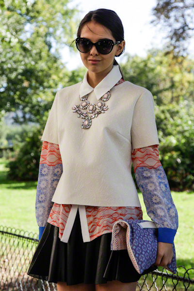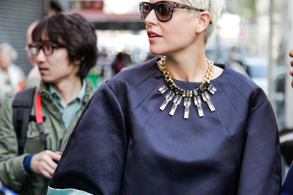 You have the right shoes, this season’s it-bag and you’re rocking a splendid dress, yet the real show stopper probably is your necklace. 2012 has been all about the statement necklaces. The bolder, brighter and crazier shaped the better. Streetstyle icons like Elisa Nalin, Miroslava Duma and Anna dello Russo made head’s turn in the streets with their mesmerizing jewelry. And did you see Elena Perminova’s legs necklace paired with this season’s it-sweater by Kenzo? Really, when it comes to this streetstyle trend anything goes. Fruit, flowers, birds and ice creams make some outstanding necklaces. And you can even try and DIY your very own. Just combine it with a colorful look and let the necklace do the talking…