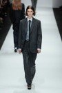 Colors were almost entirely plays on black, in different shades and textures, and with neckties wafting gently, like the soft, full pants. Bespoke tailoring alternates with nonchalance in plus size jackets with cool swagger. Decorative details soften an otherwise severely serious look.