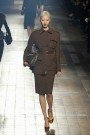 The buzz words where: intimate, feminine, elegance and emotion. Not just the collections played their roll. In some cases the interest in settings and sceneries became predominant. The Vuitton show unrolled like a silent movie. The mood was the 1920s, as the models came through each door on the corridor that was the hotel set. An atmosphere just as cinematic was the Film Noir setting at Prada – a spinning ceiling fan, shadows cast by blinds, a woman silhouetted in a doorway, waiting for…? All by means of an artful back projection. Miuccia launched her exercise in fashion as cinema.
