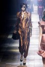 Ports played with New Look proportions combining astrakhan jackets and hoodies with full circle, below the knee, skirts. Max Mara’s cocoons where almost caricatures’, showing bulky layers of fuzzy fur-looks in giant square tops and coats. Blumarine showed boho flair in lean long-loop-knitted cardigans and pastel shaded shearling bikers. Gucci combined sensual curves with cosy egg-shaped astrakhans and pony hair jackets.