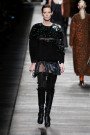 Just Cavalli in general went for the hairy fluff, but here he wrapped his model in snug short shearling in a pretty pale pastel. At Fendi zippered skirts and parka’s, sporty as well as romantic, with tufts of fur on luxurious casual coats. And also Gucci tapped into the casual side of its heritage, with smart double-breasted coats, short high-waisted dresses in sugary macaron-shaded and faded pastels. To quote Suzy Menkes for NYTimes: ‘All good and luxurious stuff’.
