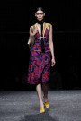 Dries van Noten is inspired by Bridget Riley, an English painter who is one of the foremost exponents of Op art. The most optical and delirious patterns where inspired by her works, that had a disorienting physical effect on the eye. This art part being whole-heartedly alternated with true fashion icons – as brilliant flat flowers, supersize 3-D corsages and chic sliver shoes.