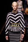 No. 21’s tropical spring outfits, show layered street wear with ornate embroidered gauzes in an edgy arty-crafty spirit. The exceptional work of the couture fur ateliers of Fendi delivered a collection boosting with streamlined modernity inspired by the ‘light and lightness’. Careful bits and pieces of preciously crafted, exceptional materials are artfully clustered. At Just Cavalli one seemed to have bumped into London punks during an inspirational trip to Bhutan. Digital prints, animals spots and handkerchief patterns, all Cavalli icons, where mixed in an iconoclast mix.