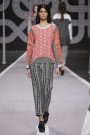 Great to see some power and vibrancy coming to stage. Where glamour, sportswear and technology meet, energy sparks and flickers. Demure, slightly unhinged optical illusions and psychedelic swirl in hybrid cloths coming straight from the fashion laboratory. With swirling spirals, mish meshed two-dimensional flowers – all flavoured with unexpected elegance.