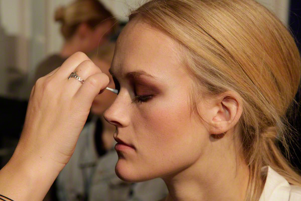 The hair and make up matched perfectly with the minimal collection in autumn-like colors of Studio Jux. The hair and smokey eyes gave the mannequins a mysterious aura.