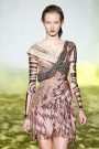 The idea that someone could “be scarred and still beautiful” was the collection’s leitmotif. The designers made up their own story about a woman burned alive and who is transformed into a California condor. Forced to survive in a war-torn landscape, she pieces together her attire from rags that only serve to expose her wounds.