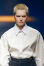 In Milan and Paris we’ve seen the whole spectrum of blue coming by, from very soft and light to ultra dark en mysterious: azure, indigo, ultra marine. Highly popular is the monochromatic look, with a key-role for the suit. The navy suit has became a real wardrobe essential. But designers seem to want to reinvent the classic suit and are experimenting with all the different possibilities and playing with new elements and details, which results in mixing all shades of blue, prints (checks!) and fabrics.