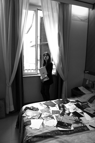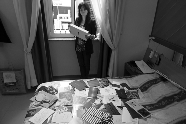 Started the first day of the Milan Fashion Week by sorting our invitations. Loved the D&G invitation (floral printed, with some real seeds in it) and the one from Moschino, which was lemon shaped.