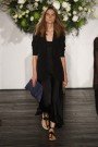 Their fall collection looks very low key and to the point, with black, white and navy as the main colors and a matte denim-blue python as their most luxurious material. There were collarless and belted wrap-coats, long sleeve leather T-shirts, silk jumpsuits, long hemlines and a slouchy tuxedo-jacket. All shown with flat Grecian sandals and models with hardly any make-up.