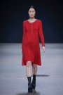 If there’s one designer that knows how to deliver consistently it’s Tony Cohen. Tonight he presented his fall/winter collection that lived up to our expectations and managed to be surprising as well. Overall the silhouette was long, lean and asymmetric and the color palette dark; Cohen’s signature. Looks were created out of the perfect mix of textures… lots of leather, pieces of knitwear, some airy accents and silver details. A full on green ensemble looked impressive and some of the floor sweeping numbers definitely made an impact too. Pleated pants and oversized, structured blouses and long skirts with high slits looked cool and chic at the same time. Black leather gloves and filt hats added to the coolness of the looks. (filt) Hats off for Tony, for coming up with another strong and steady collection.