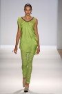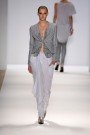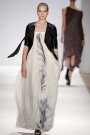 Amsterdam based designer Tony Cohen showed his signature flowing, asymmetric dresses and tunics. Colors shifted from silvery white to greys, blacks and bolder colors like green and red. Graphic black&white animal-like and smokey prints added some excitement.
