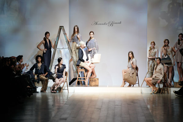 Jessica Jensen is a Canadian handbag label. The collection combines luxurious Italian leathers, handcrafted workmanship, unique detailings and seasonal hues creating designs that are both timeless and fresh. For Spring Summer 2011, Jessica Jensen is proud to collaborate with New York designer, Alexander Berardi on an exclusive collection of limited edition handbags. He also presented a selection of his ss 2011 ready to wear.