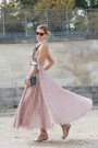 Regardless of what styles are in, the hippie/boho look is always a winner in summertime. This season, besides the regular fringe, suede and floral printed touches, it includes airy, floor sweeping dresses. Some figure hugging (Cavalli), others loose and floaty (Chloé). Revealing bits and pieces of the skin through sheerness, cut-outs, high slits and lace detailing. A luxury feel inspired by Talitha Getty outspoken style is created by adding glam jewelry and highly decorated accessories. Ethnic, graphic and kaleidoscopic motifs are alternated by nudes and tan colored numbers. Bringing touches of Marrakesh from the seventies to the here and now.