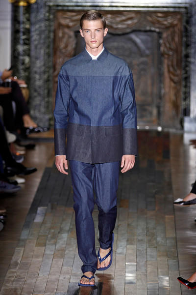 It was obvious that workwear and military uniforms were the guiding themes for Valentino-designers Maria Grazia Chiuri and Pierpaolo Piccioli. The show kicked off with a series of suits and outerwear, including shirt jackets and parkas, spliced together from various shades of denim.