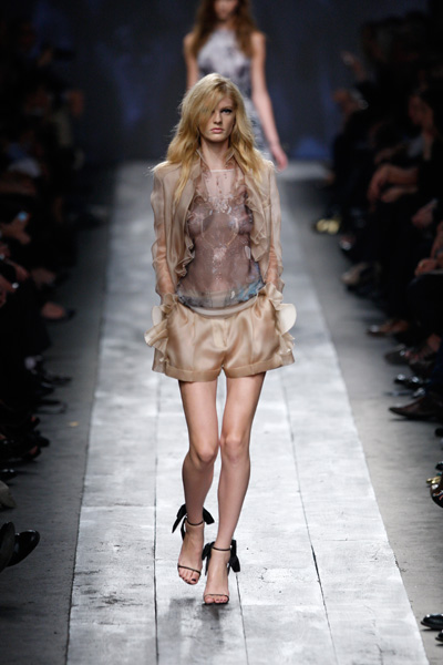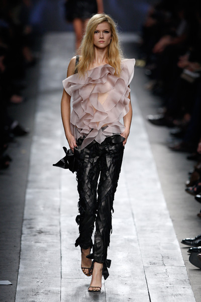 All the Valentino aspects were there. The ruffles, the sheerness, the sexy dresses and the red. Though this time it was not the signature Valentino red we saw; it looked slightly more pink.