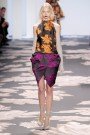 Vera Wang tried a different path with her ss2012 collection. More psychedelic colors and prints, different shapes and volumes, new colors. But the result was too much fairytale and less reality. Tiny little vests with detachable volants in cotton and oversize eyelet. Skirts made from sheer parachute silk that grazed the thighs in the front and trailed weightless in the back. Gowns with diamond-shape cutouts on the chest. Gauzy leggings. The effect looked a bit forced.