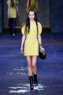 Christopher Kane himself described today’s Versus collection as Cartoon-y and toy-like. And well.. that pretty much covers every look. For fifteen minutes Donatella and Christopher welcomed us into their plastic Barbie-like world. Colors (pink, yellow, blue) were bright, materials (a lot of plastic) shiny and prints (several polka dot variations) clownesque & playful. The designers even came up with accessories, shoes and a few designs made out of plastic chains. There were fully printed looks, flirty asymmetrical dresses, patent leather coats, sheer pink pants and sporty mesh tops. Mix that all together and you’ve got yourself a fun selection of sixties inspired looks. Add a performance of Beth Ditto (singing from above the photographers’ pit) and it’s the ultimate Saturday afternoon entertainment. Optimism is the feeling Versus wants to spread for SS2013 so let’s keep that spirit!