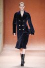 Victoria Beckham brought a tailored, soft and modest collection on stage yesterday. By using rich-but-grounded colors, like navy, oxblood, red and orange, and reworking classic men’s tailoring with square blazers and full-leg trousers, Beckham sent a subliminal message of strength. A woman in a sharply cut burgundy coat over fluid pants with a dashing foulard swishing under the coat is dressed to be taken seriously.