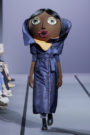 Their outfits consist of a bomber jacket, jeans and a t-shirt. Various doll elements, including fabric-covered faces and bodies are fragmented and mingled into an extreme patchwork statement.