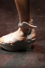 Next to the ultra high shoes we saw ultra-flat sandals (Issey Miyake, Anna Sui, Valentino, Lacoste, Etro, Armani, Chloe). Those sandals, snake leather and wearing socks in open shoes seem to become the trends for this spring.