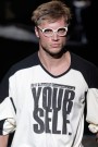 A show of Vivienne Westwood is always like a little party: you know she’ll send out sexy hunks in funny clothes with some kind of message. This time the models looked scary with their Joker-smile and Zorro-masks. The collection was a little predictable: printed shirts, full trousers, colorful sportswear and a gimmick now and then.