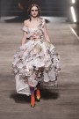 The emphasized shoulders and the voluminous dresses were two great aspects of the show. Towards the end a white dress with floral prints and a light-colored waist belt looked lovely. An orange/pink gown felt like French couture and would also look perfect on the Sleeping Beauty (plus sleeping is probably the best thing to do in a delicate dress like that).