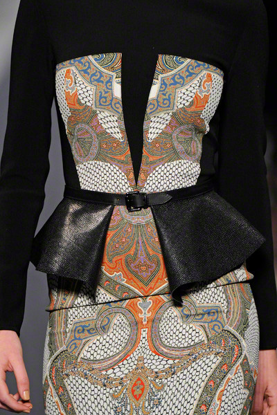 As a result of last season’s peplum hype this fall it is all about the accentuated waistline again. At Etro and Dior we still spotted some gorgeous peplums, yet other brands (Oscar de la Renta, Salvatore Ferragamo, Prada, Rodarte) created the same hourglass effect by belting tops, jackets and even big winter coats.