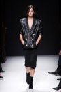 At Mugler, the creative director Nicola Formichetti and designer Sébastien Peigné, linked directly to Thierry Mugler. Their point of reference was the designer’s 1997 “insects” couture collection, with supermodels in patent leather and bug-eyed masks. It resulted in a subtle translation like in the pattern of a black and white dress with super-sized shoulders and glossy black croc appliqués on a sheer form-fitting dress.