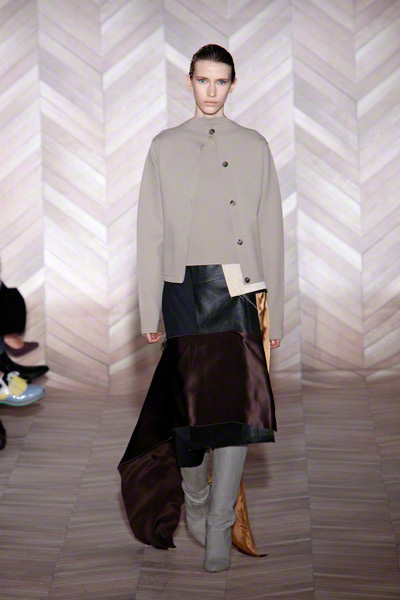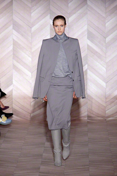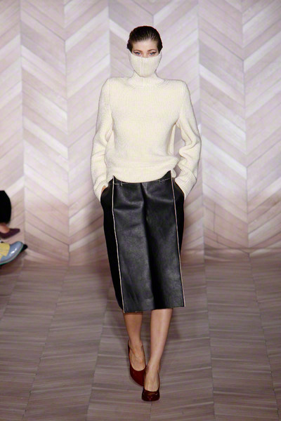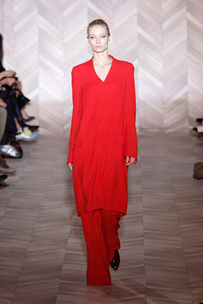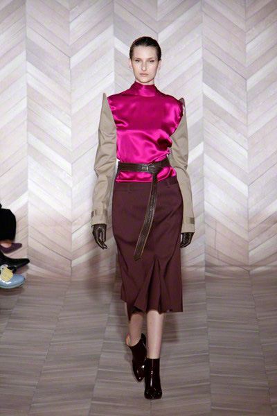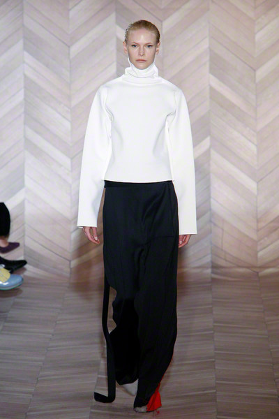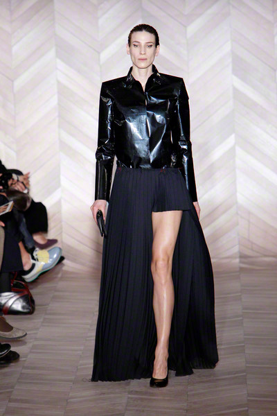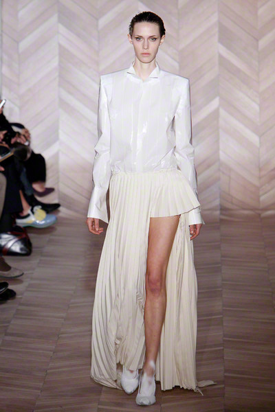 And just days after Angelina Jolie’s slit dress and thus her sexy bare leg at the Oscars were all over the news Maison Martin Margiela showed the same kind of sexiness. Pleated skirts which were short left and maxi on the right revealed the models’ amazing toned legs, wow. Matched with shiny, straight blouses they created the ultimate cool chic look.
