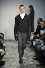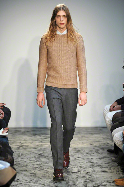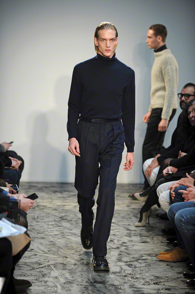 At Pringle too, the turtleneck made an appearance. Yet Carr let his models wear them underneath a thick knitted sweater instead of a shirt, like the other menswear brands did.