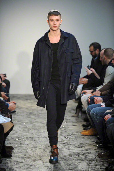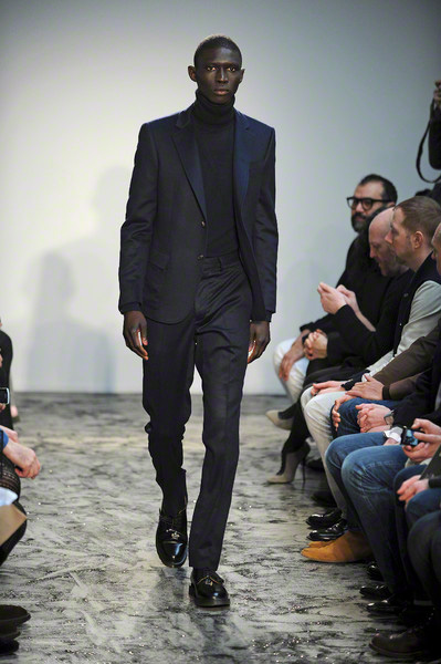 Then again, when it comes to real life wearability this Hermès collection will get the highest scores. There was about anything any man could possibly need for his winter wardrobe. Slick suits, check. Long jackets, check. Woolen sweaters, check. Tight turtle necks, check. And of course it wouldn’t be a Hermès winter collection without some solid leather pieces like a jacket, trenchcoat, pair of trousers and even a croc leather shirt.