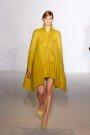 Everybody talked about Jason Wu’s inspiration, photographer Irving Penn, but you better ignore that. The designer just wanted to do something different than the princess-like clothes he’s famous for thanks to Michele Obama. So Wu took a good look at menswear – that’s where the personal style of Penn comes along – and morphed influences into pretty womenswear with a mannish touch. He presented short sleeved jackets, oversized cashmere coats, mohair sweaters and fold-over pants. The overall look had an appealing, relaxed sensibility. Grey, black, white and blue were the main colors with splashes of mustard, orange, yellow, golden and green.