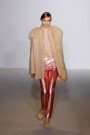 It looked like Alexander Wang took the traditional banker’s uniform – the darkblue pinstriped suit – deconstructed it and put it together again. The result was sexy and dark, almost with a Belgian touch. But where designers like An Demeulemeester and the early Martin Margiela put a lot of effort in the making, the cut and the fit, it seemed Wang aimed more at the effect. Cropped blazers, tailcoats and vests exposed flashes of skin and were worn with thick thigh-high legwarmers and chunky heels. Layering also played a part in this collection, but was less relaxed. For evening and partywear Wang chose velvet and chenille.