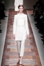Folk seemed to be the theme of the Valentino-collection, but we couldn’t tell that from the clothes. Or is must have been the dresses with native motifs that reminded of Greece, Russia or the Orient. But the black leather that opened the show, told a different story. All in all it was a smooth, feminine collection with the familiar dresses and jumpsuits, softened with macramé seams and passementerie details.
